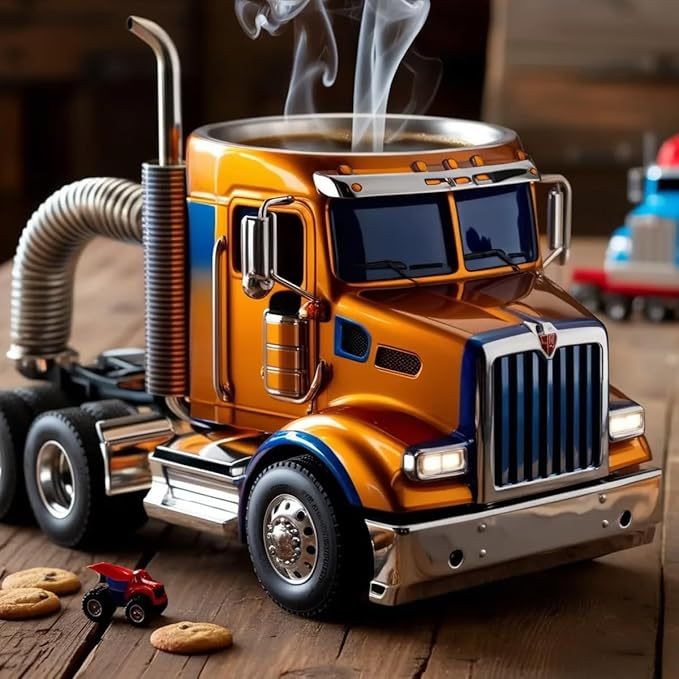 Semi-Truck Coffee Mugs, Handcrafted Creative Truck Coffee Mug, Stainless Steel Truck Coffee Cup,Unique Truck Coffee Mug Gifts For Coffee Loving Truckers