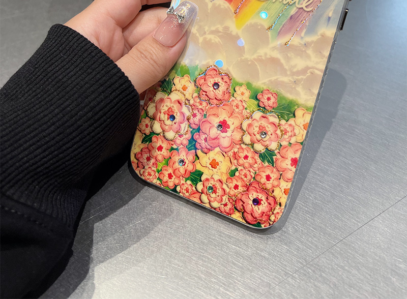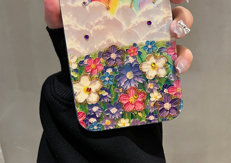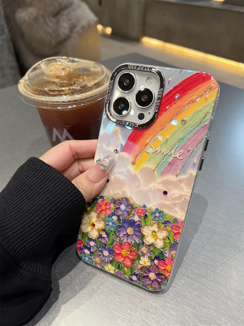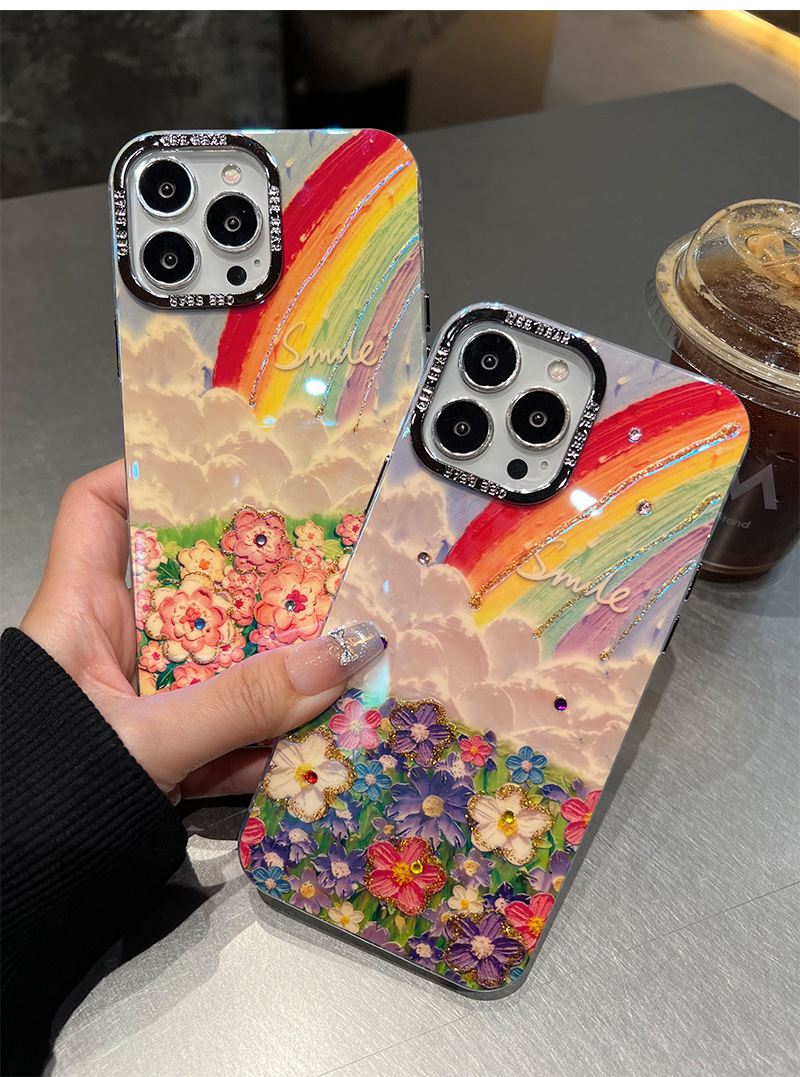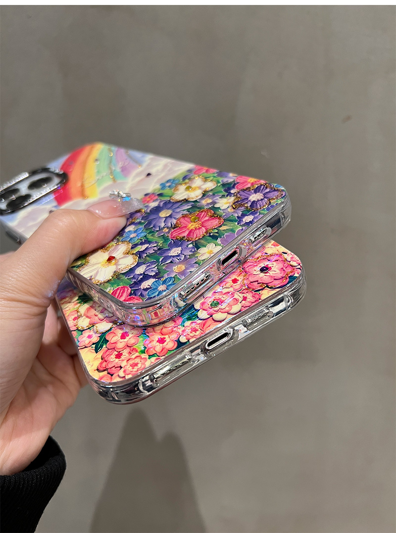 Classy Rainbow Cloud Flowers Floral Garden Painting Case with Silver Glitter Lens Protector Set