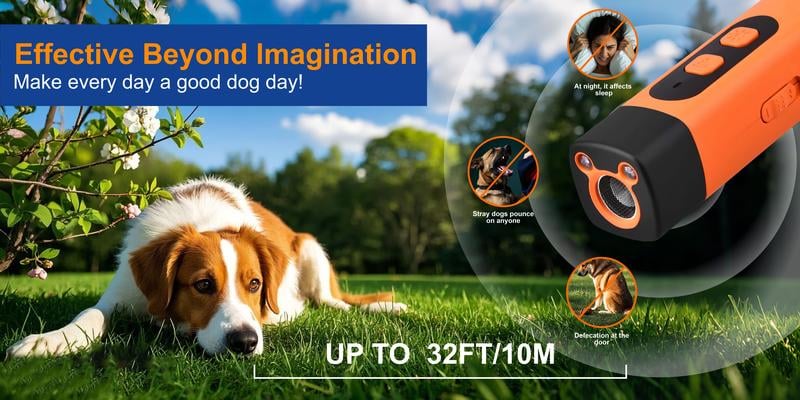 This 2-in-1 ultrasonic dog deterrent is designed for effective training and control of dog barking, without the pain of electric collars. It emits ultrasonic waves to effectively reduce barking, digging, scratching, biting, and jumping on furniture—an ideal tool for dog training.