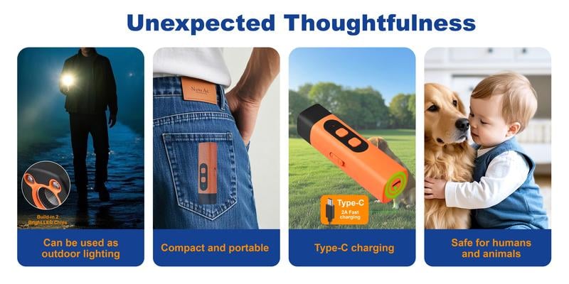 It not only trains your dog, but its flashing mode can also effectively deter aggressive or hostile dogs while walking, jogging, or cycling. The compact design is easy to carry, ensuring your and your dog's safety.