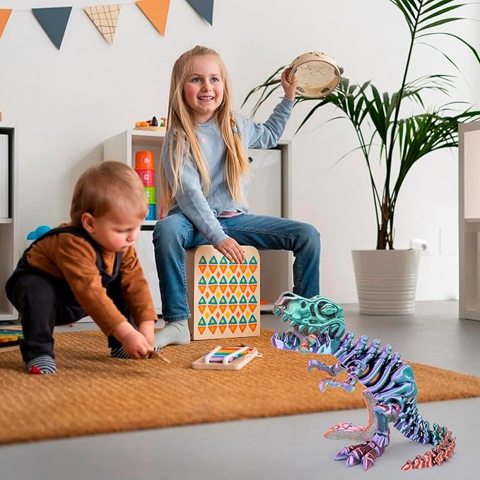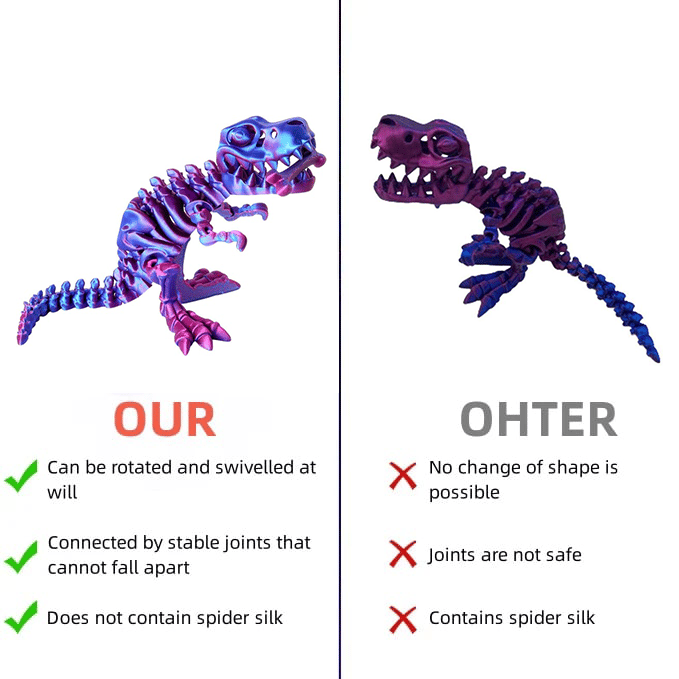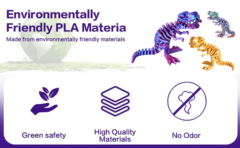 Our this 3D printed dinosaur is made of safe and environmentally friendly PLA, which is a food-grade, all-natural, non-hazardous, and fully biodegradable material that is great for children and home environments.🦖