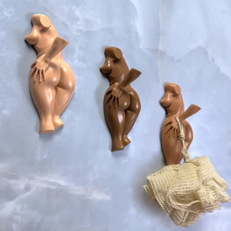 Shaped like a stylized human body in a cheeky pose, it’s designed to hold towels, loofahs, bags, or accessories — while also delivering a guaranteed smile.