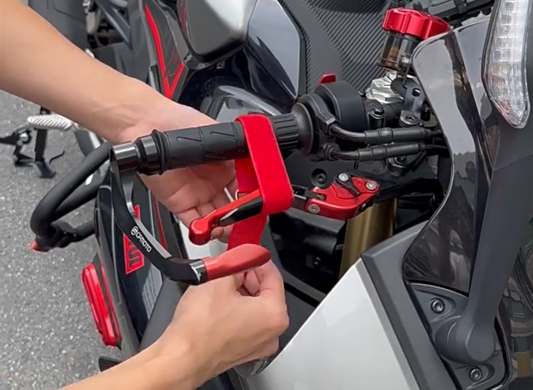 1.Stop the motorcycle with the side stand, lock the handlebars of the motorcycle, use a tightening belt to tie and lock the front brake, and put the front wheel in the braking state.