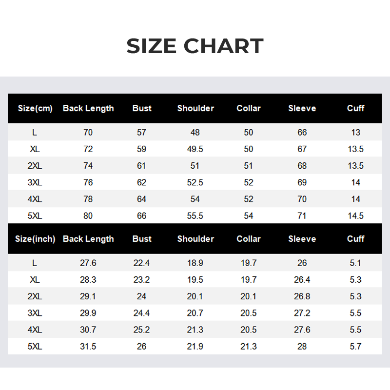 Size: L, XL, 2XL, 3XL, 4XL, 5XL