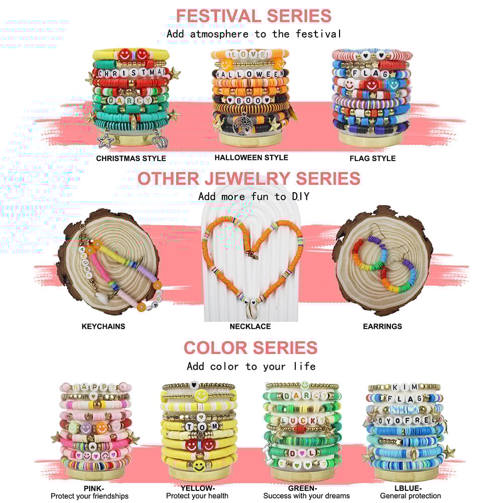 PREMIUM QUALITY, 100% SAFE TO USE - Beads are made of polymer clay, a type of PVC material. Eco-friendly, non-toxic, strong plasticity, and durability. The diameter of clay heishi beads is 6mm with a 2mm hole and thickness is 1mm. The clay beads for bracelets are lightweight, not easy ro fade, comfortable to wear and waterproof when you wear it at the beach or pool.