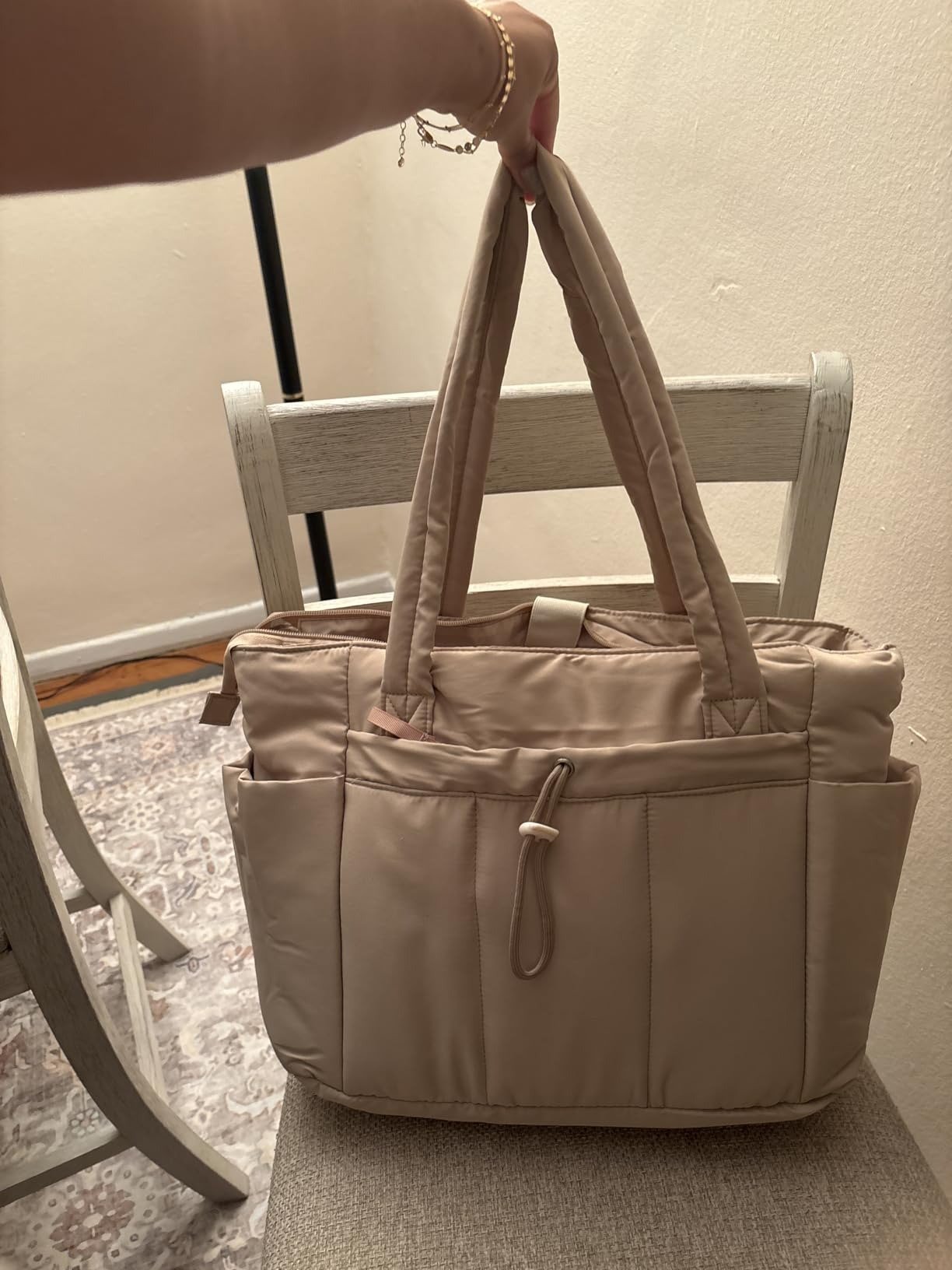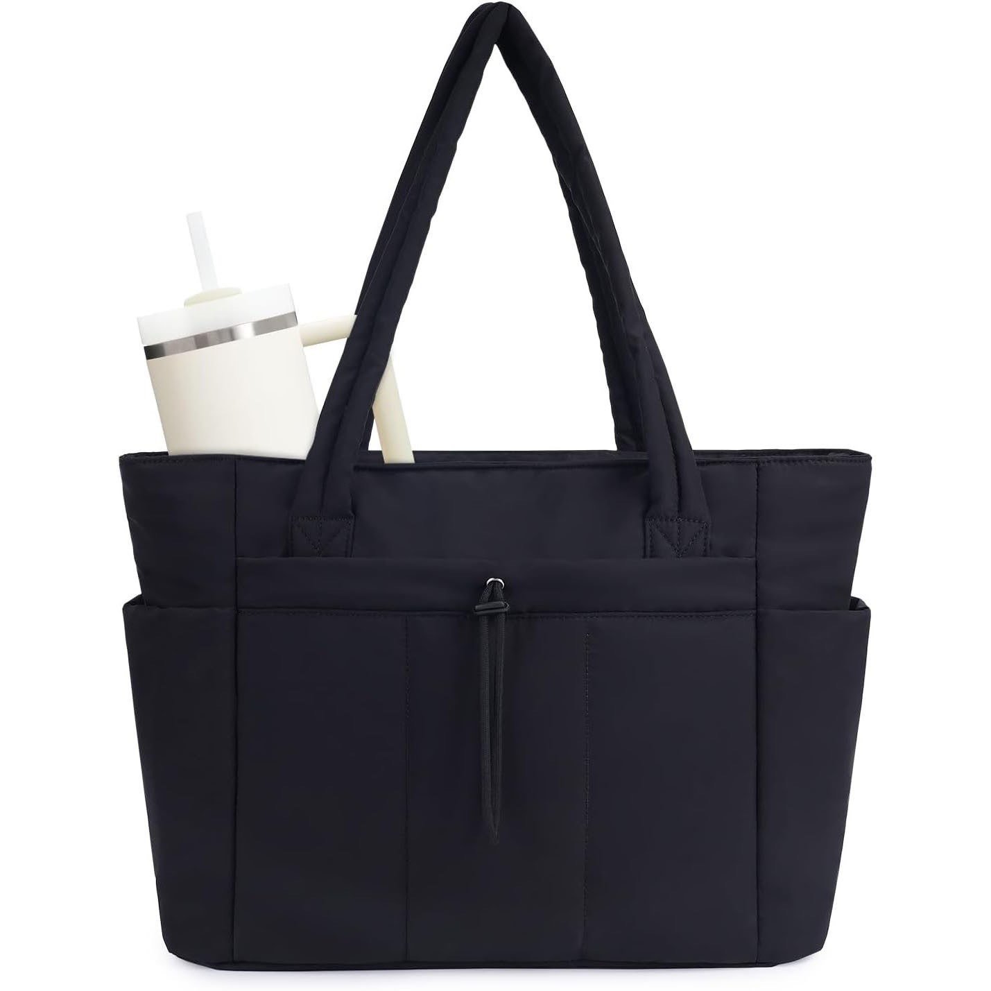 Stay organized, stylish, and hydrated wherever your day takes you. This lightweight quilted tote bag is thoughtfully designed to carry your essentials—including your laptop and tumbler—without feeling bulky or heavy. Whether you’re commuting, traveling, heading to the gym, or running errands, this tote adapts effortlessly to your lifestyle.