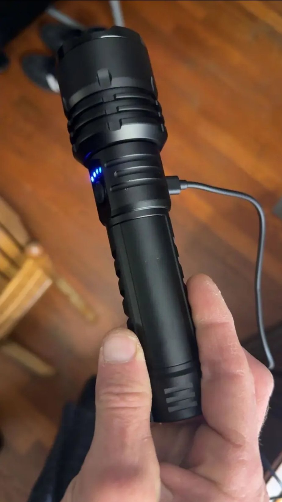 Charge the Flashlight: Plug the USB charging cable into the flashlight to recharge. Wait for the indicator to show 100% before use. ⚡
