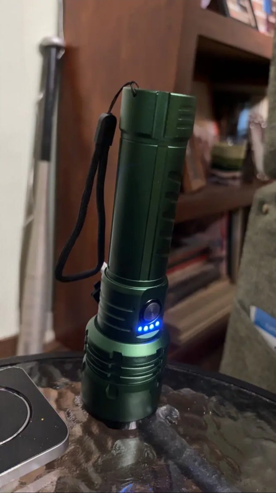 A: The flashlight features a power indicator that shows 100%-75%-50%-25% so you always know the battery level. 🔋