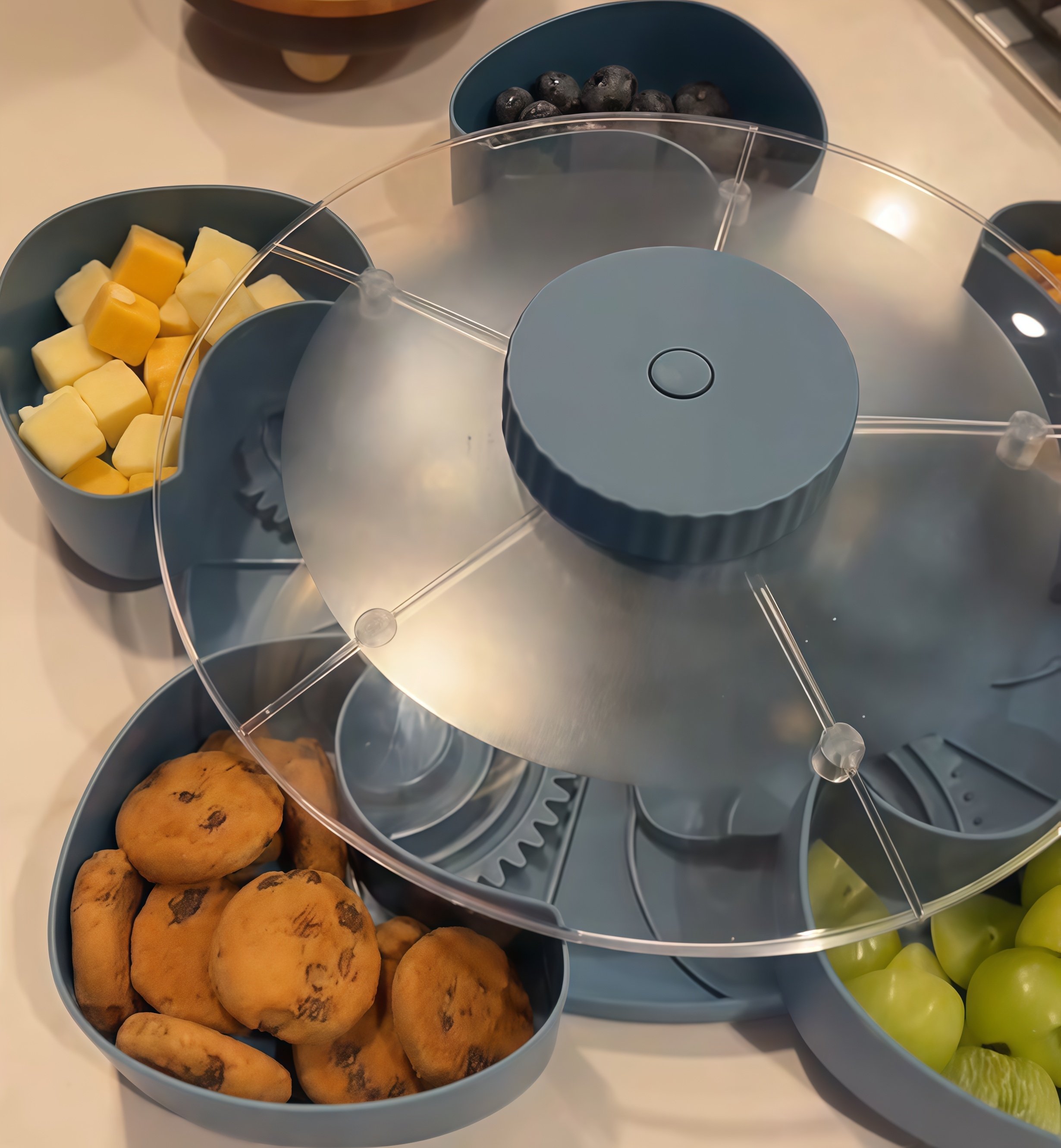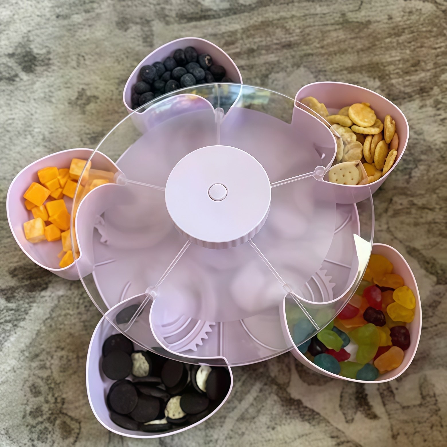 Our rotating snack serving tray offers the perfect answer: a clever and practical way to present multiple snacks in one compact, neat, and stable design—making every gathering more enjoyable.