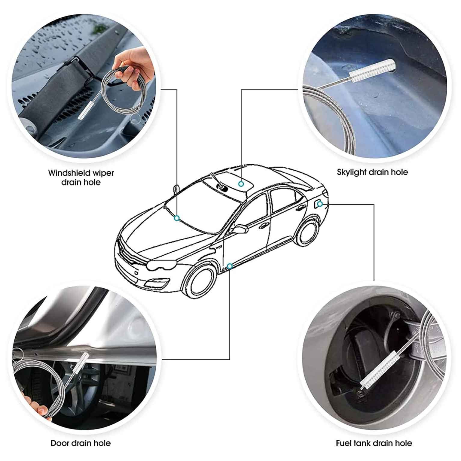Sunroof drain cleaning tool for car: Our tube hose brush total length is 1.5m; the wire tube brush is flexible to even work for curved tubing that angled less than 90 degrees; reusable.