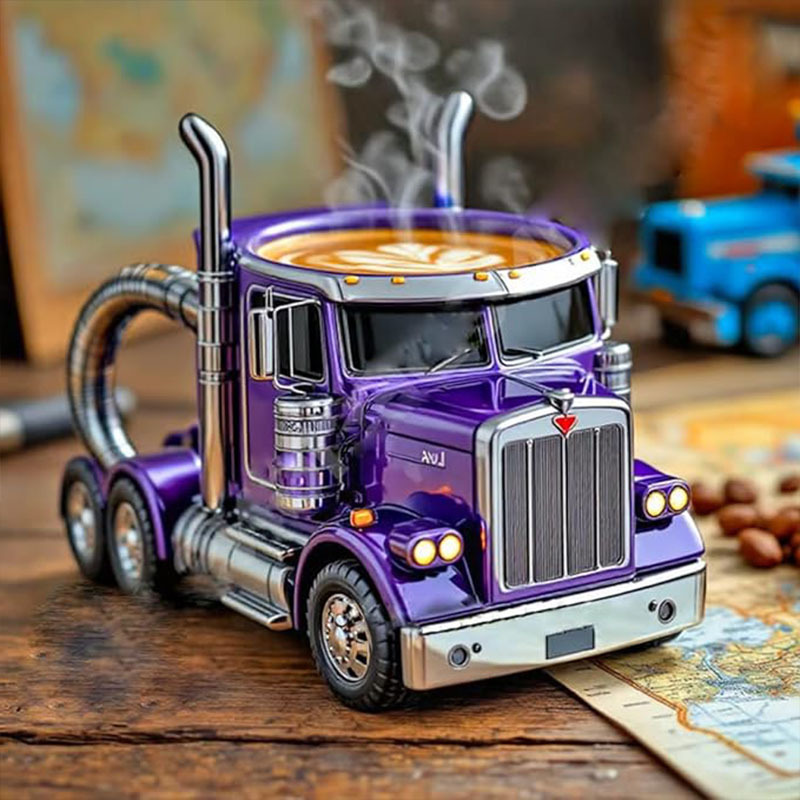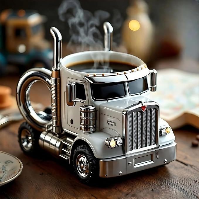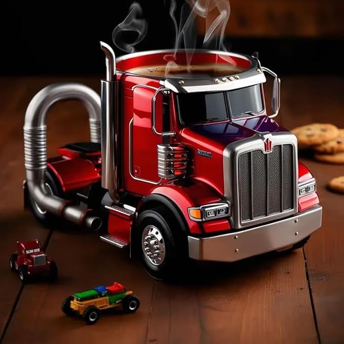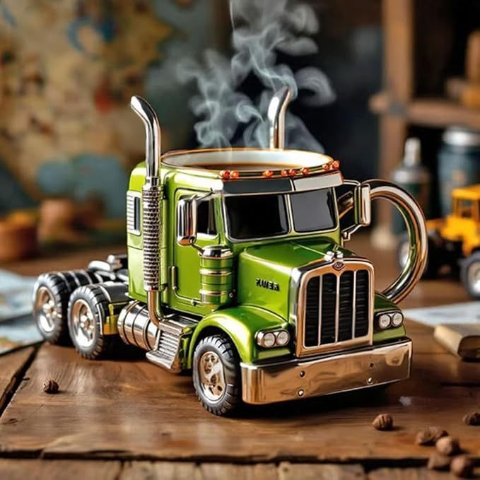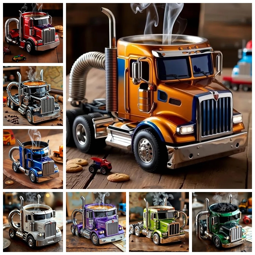 Semi-Truck Coffee Mugs, Handcrafted Creative Truck Coffee Mug, Stainless Steel Truck Coffee Cup,Unique Truck Coffee Mug Gifts For Coffee Loving Truckers