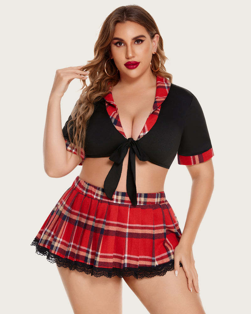 Plus Size Lingerie with Tie Top and Mini Skirt