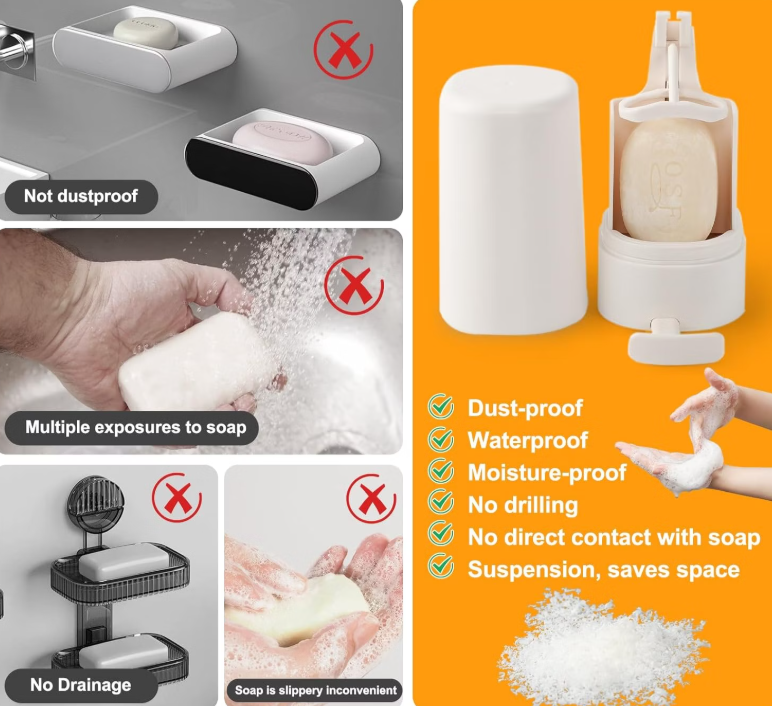 Tired of running out of liquid soap? The Soap Grinder Dispenser is your solution! It's not just a tool—it’s a sustainable lifestyle choice that reduces plastic waste and helps you save money. Simply push, grind, and wash—no mess, no fuss, just fresh lather every time.