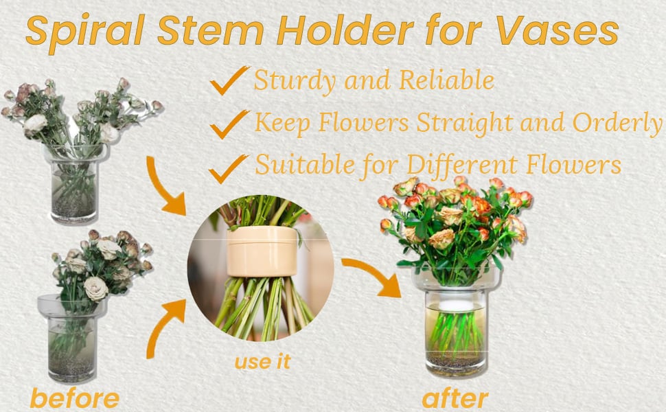 🌟 Easy to use: You don't need to be a professional florist to create professional-looking arrangements. Our spiral flower stem holders are user-friendly and make flower arranging a breeze for anyone.