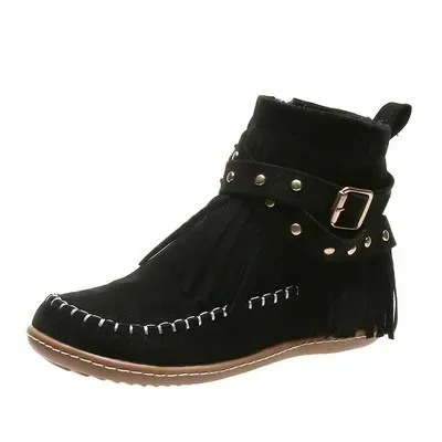 Autumn and winter rivet tassel moccasin boots