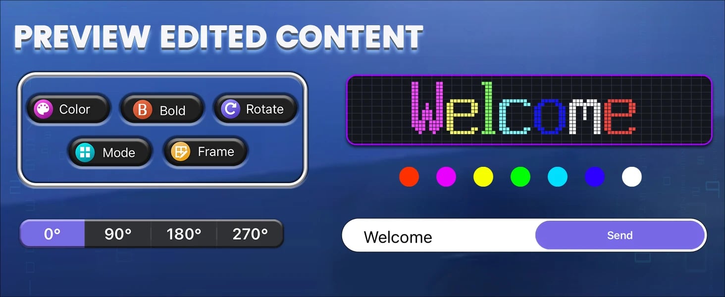 LED sign is controlled by a Bluetooth-connected app, which supports connecting multiple LED displays at the same time, making your store more eye-catching, the app has built-in many interesting modes and animations. Your phone makes it easier to customize fun patterns and text to personalize your store.